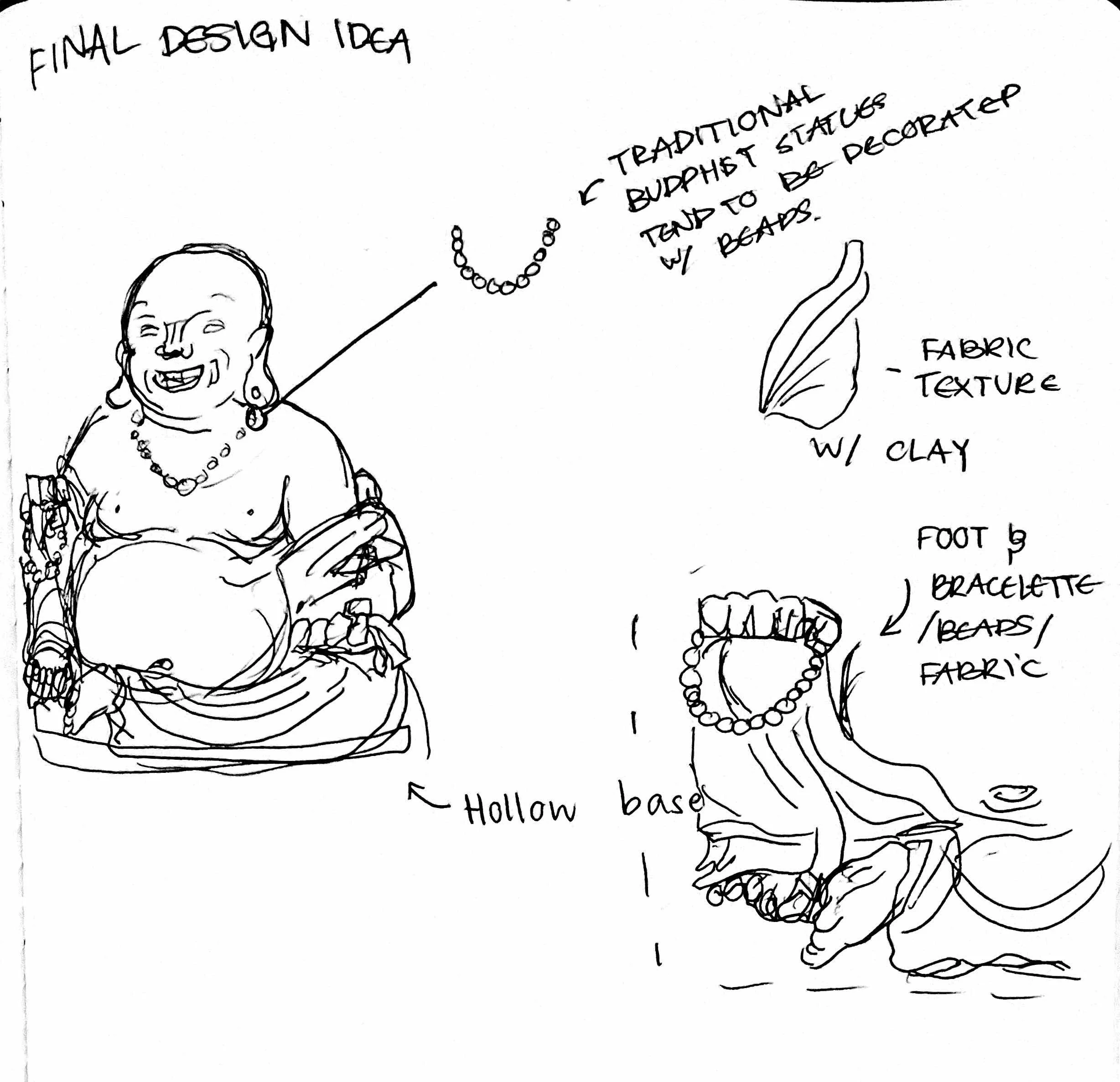 I feel as if the surface treatment for this piece certainly elevated the final form. I chose the glaze we see on the figure to make it appear old and rustic, and I feel as if it helped me express capture the essence of these historical figures. The Buddha will live on longer than the rest of us.