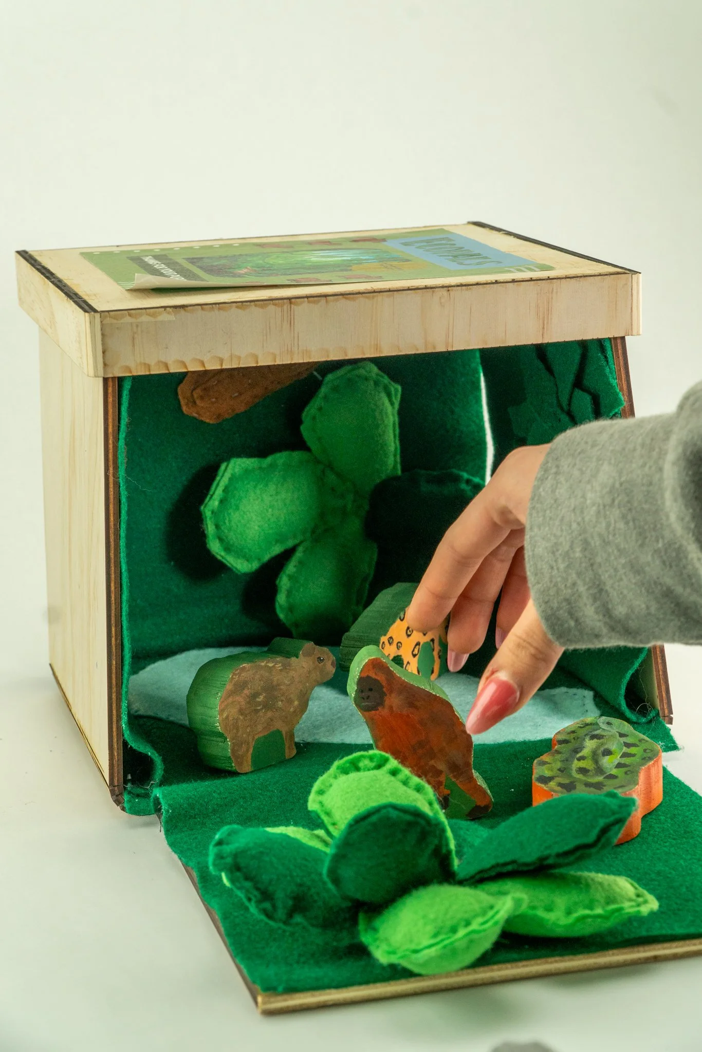 Our group decided on creating Jungle Box Set. We wanted to make something interactive, aesthetic, fun, nature-based, and unique. Our consumers can unbox a world of their own when they open our product. They can explore different environments and creatively interact.